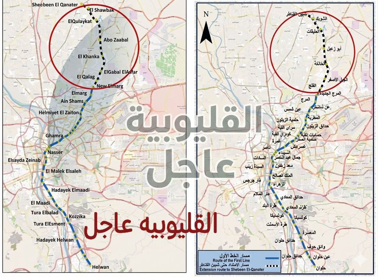 تصميم خط مترو #المرج – #شبين_القناطر يمتد بطـــول 19 كم وعــــدد 14 محطة من محطة المرج الجديدة شمالا حتى مـــدينة شبين القنــاطر بهدف توسيع شبكة المترو وتحسين خدمات النقل الجماعي وتوفير وسيلة نقل آمنة وسريعة وعصرية على المسار تتكامل مع باقي وسائل النقل داخل القاهرة الكبرى. سيتم تنفيذ الامتداد في مسار (سطحي) معزول بالكامل ماعدا في بعض التقاطعات المرورية ربما سيتم عمل كباري أو انفاق تحت الطريق والغاء خط سكة حديد 23 يوليو/ شبين القناطر القائم .