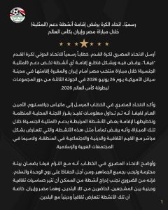 أرسل الاتحاد المصري لكرة القدم، خطابا رسميا للاتحاد الدولي لكرة القدم “فيفا”، يعلن فيه موقفها بشكل قاطع من إقامة أي أنشطة تخص دعم المثلية الجنسية بكأس العالم 2026.