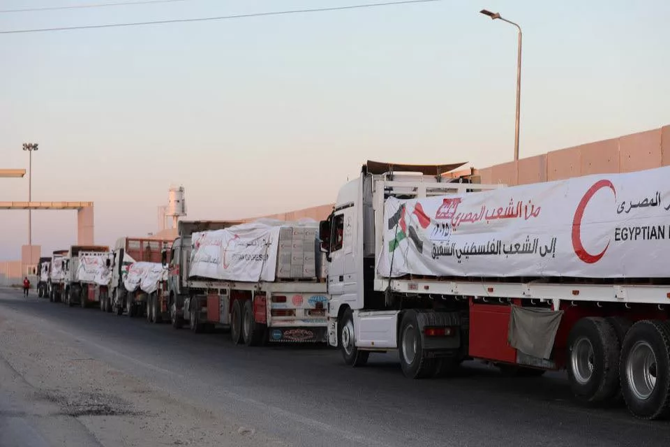 بدء تحرك القافلة الـ 95 للمساعدات تمهيدا لدخولها غزة عبر معبر رفح