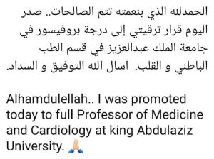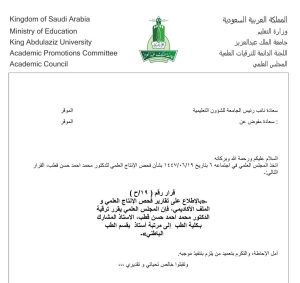 الأستاذ المشارك بكلية الطب الي مرتبة استاذ بقسم الطب الباطني ( بروفيسور)