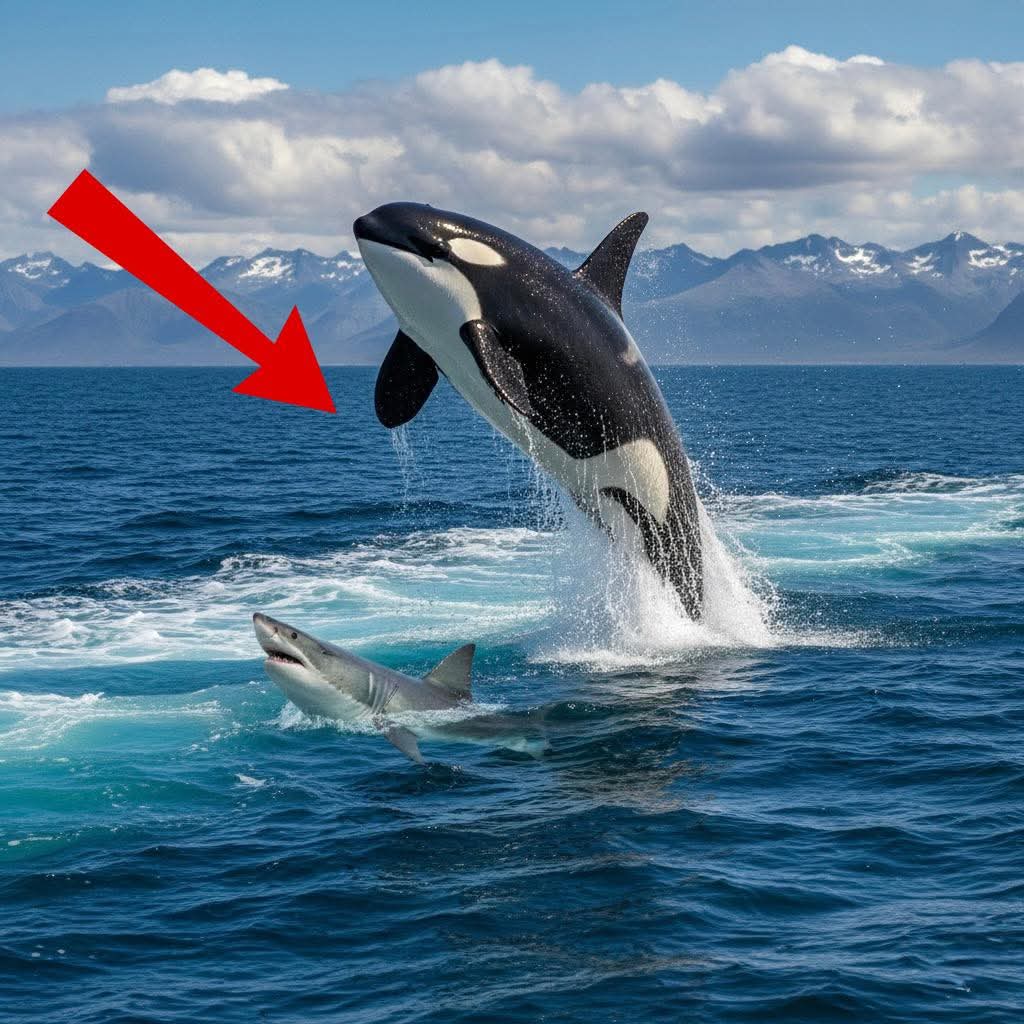 من أعجب تكتيكات الأوركا عند مواجهة القرش الأبيض، أنها تقوم بقلب جسمه على ظهره! هذه الحركة تُدخل القرش في حالة تخدير وشلل كامل، عندها تقوم الأوركا بالتهام “الكبد” فقط بدقة جراحية وتترك باقي الجسد، لعلمها الفطري أن الكبد هو الجزء الأكثر غنىً بالقيمة الغذائية.