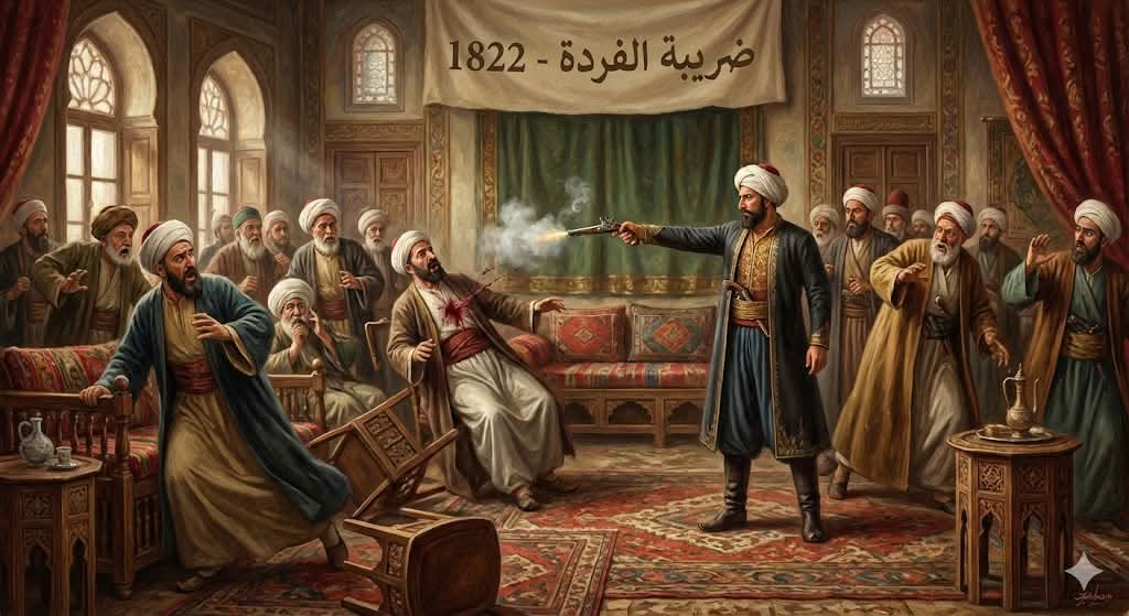 إبراهيم باشا طلع “الطبنجة” (المسدس) من جيبه، ووجهها لصدر المعلم غالي، وأطلق الرصاص! 💥