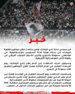 حافلات خاصه لنقل الجماهير لمواجهتي الفريق باستاد هيئة قناة السويس